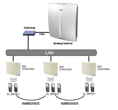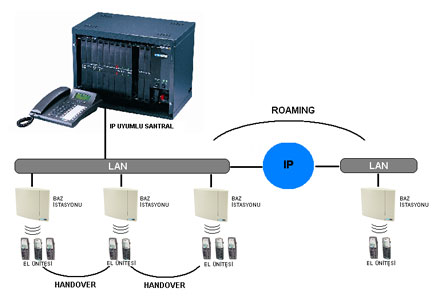 Handover ve Roaming desteği ile kesintisiz iletişim Karel IP-DECT sisteminin handover desteği sayesinde hareketli kullanıcıların görüşmeleri baz istasyonu kapsama alanları arasında gezerken kesilmemekte, görüşme devamlılığı garanti altına alınmaktadır. Karel IP-DECT sisteminin Roaming desteği ile ofisleriniz tek bir kablosuz haberleşme çatısı altında birleşmekte, çalışanlarınız aynı el ünitesi ve abone numarası ile farklı bir ofisten de görüşme yapabilmektedir.
